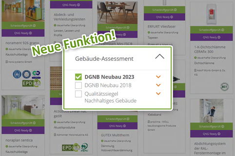 - Erhalten Sie Sicherheit bei der Materialauswahl für Gebäudezertifizierungen wie z. B. DGNB, QNG, EU-Taxonomie