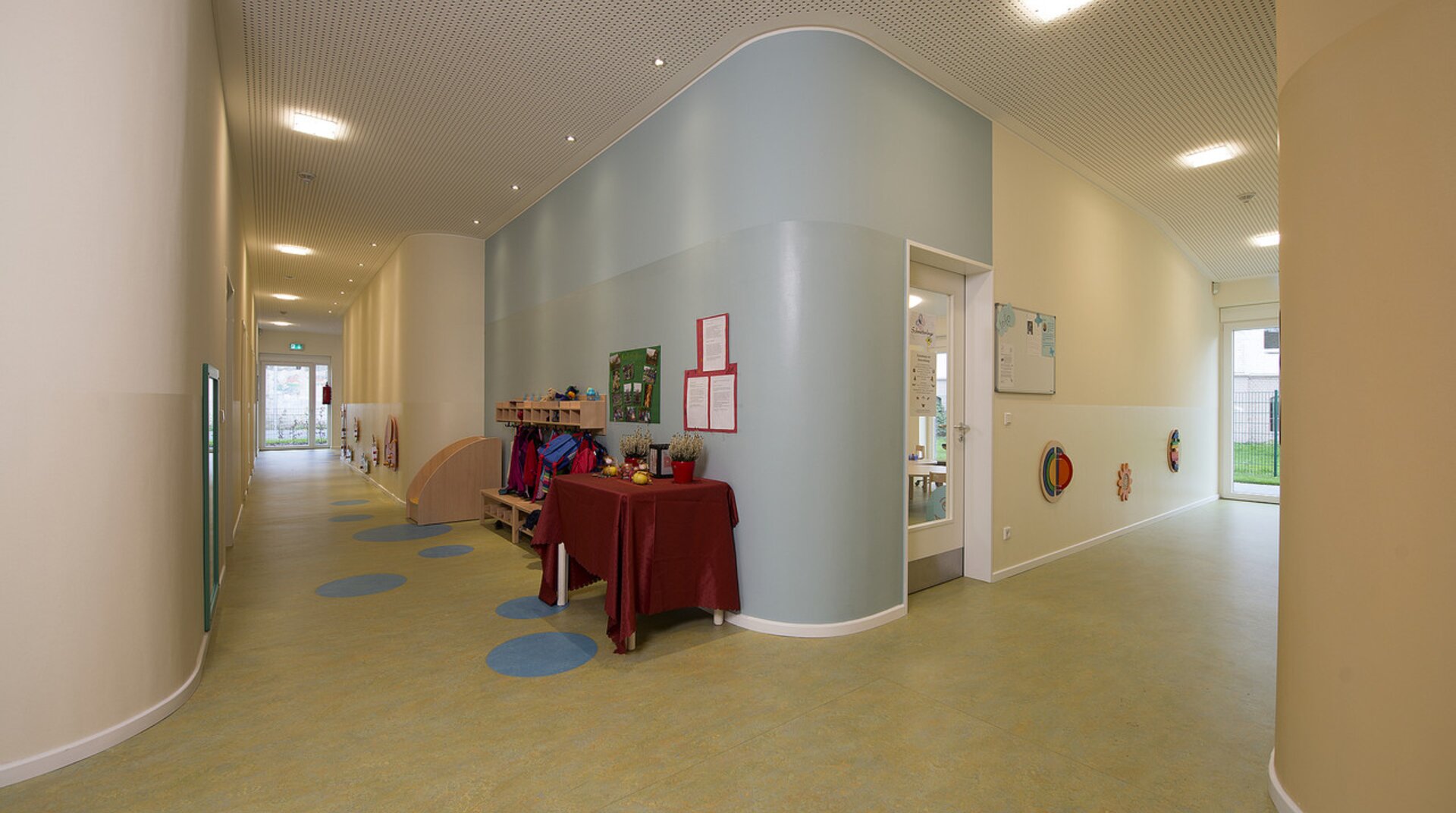 Insgesamt 40 Krippenplätze für die Betreuung von Kindern unter drei Jahren sind entstanden. Die Investitionskosten beliefen sich auf gut 1,4 Millionen Euro. Im Herbst 2012 wird der Grundstein für einen 320 Quadratmeter großen Neubau zwischen dem bestehenden Gebäude und dem Haus der Caritas an der Linienstraße gesetzt. Im Winter 2013 fand dann die Zertifikatsübergabe statt.