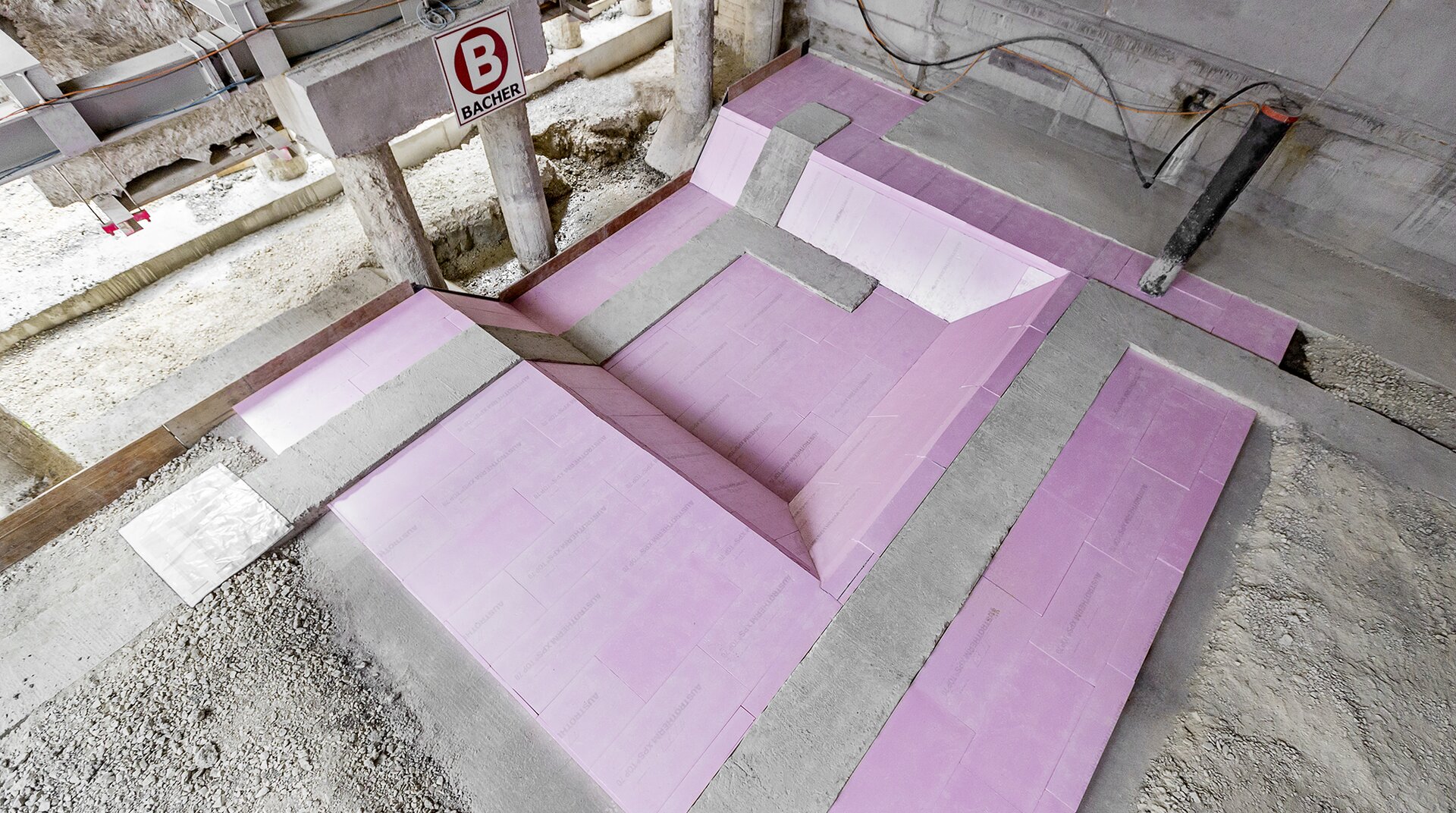 Eine denkmalgeschützte Gießereihalle in Ingolstadt wird zum Kunstmuseum und bekommt dafür ein ganz neues Untergeschoß – große Herausforderungen für den Spezialtiefbau, aber auch für die Dämmung. Gefragt waren XPS-Platten, deren Funktionsfähigkeit 5 Meter tief in drückendem Wasser voll intakt bleibt.