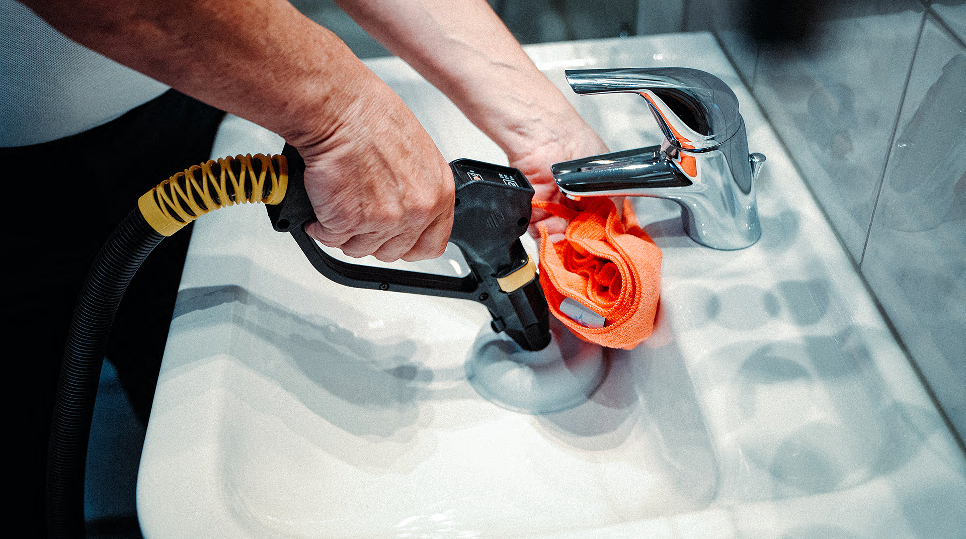 Dafür sorgt Microtrockendampf, der fast 190 Grad heiß und mit einem Wasseranteil von nur fünf Prozent sehr trocken ist. Zusätzlich arbeiten die Geräte mit einem Druck von über 9 bar. Diese drei Faktoren bewirken, dass Keime zu 99,99 Prozent reduziert werden, dass sämtliche Oberflächen gereinigt werden, auch solche die feuchtigkeitsempfindlich sind, und dass keinerlei Rückstände zurückbleiben. Denn gerade diese machen das herkömmliche Reinigen mit chemischen Putzmitteln zum ewigen Teufelskreis: jedes Reinigungsmittel hinterlässt Rückstände, an denen sich nach kurzer Zeit neuer Schmutz und neue Keime anhaften. Green Cleaning durchbricht und beendet diesen Kreislauf.