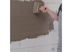 Den Untergrund mit CERAfix 101 grundieren – eine Pfützenbildung ist zu vermeiden – oder so vornässen, dass sie zum Zeitpunkt des Auftragens von CERAfix 301 Dichtungsschlämme mattfeucht ist. Als Alternative zu CERAfix 101 kann CERAfix 102, im Mischungsverhältnis 1:3 mit Wasser, verwendet werden.