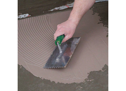 Die Dünnbettverklebung der Fliesen erfolgt auf der abgebundenen, trockenen CERAfix 301 Schicht z. B. mit den kunststoffvergüteten System-Dünnbettmörteln CERAfix 402 FX, CERAfix 403 LFX, CERAfix 412 FX. Bei der Fliesenverlegung auf eine weitgehend hohlraumarme Bettung achten. Den Natursteinkleber CERAfix 412 FX nicht im Unterwasserbereich einsetzen.