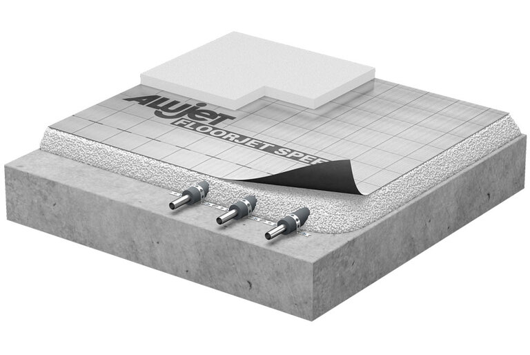 Die ALUJET Floorjet Speed ist eine wärmereflektierende, bitumenfreie Abdichtungs-bahn zur Abdichtung auf erdberührten Bodenplatten gegen Bodenfeuchte. Die Verwendbarkeit wurde durch die Einhaltung der Anforderungen nach DIN EN 13967 und unter Berücksichtigung der Bauart über ein allgemeines bauaufsichtliches Prüfzeugnis (P-1200/271/15-MPA BS) nachgewiesen.