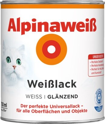 Alpina Weißlack sorgt dank seines hohen Weißgrades und seiner sehr guten Deckkraft für perfekte Lackierergebnisse – auch ohne Grundierung. Ob Neu- oder Renovierungslackierung, ob auf Holz, Metall, Mauerwerk, Putz, Beton, Hart-PVC oder auf tragfähigen Altanstrichen: die speziellen Rohstoffe und die Alpinaweiß Premiumrezeptur auf Wasserbasis sorgen stets für einen optimalen Verlauf.