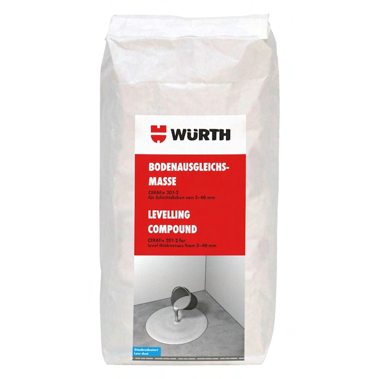 Zum Ausgleichen von unebenen Bodenflächen im Innenbereich vor der Verlegung von Keramik-, Marmor-, Naturstein- und PVC-Belägen, Teppichböden, schwimmend verlegtem Parkett und Laminat, u.a.