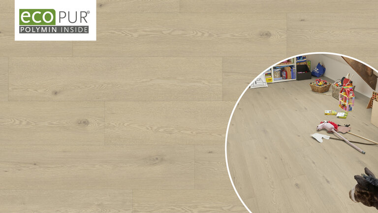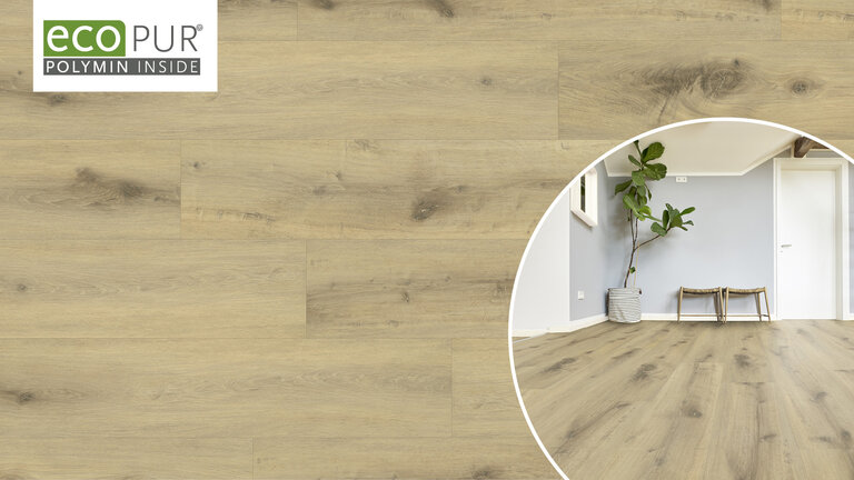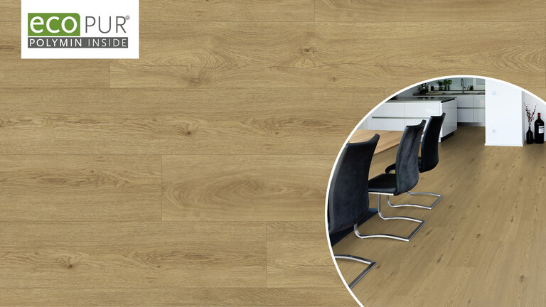Mit Eco-Pur® entscheidest du dich für einen Boden, der Umweltbewusstsein und modernes Wohnen perfekt verbindet. Gefertigt aus dem innovativen Werkstoff Polymin®, ist er PVC-frei, weichmacherfrei und vollständig recyclebar – ein echtes Statement für nachhaltiges Bauen.