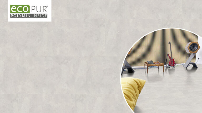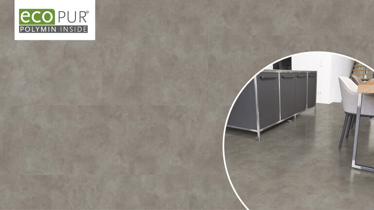 Beim Designbodenbelag Eco-Pur® wird statt PVC der neue und innovative Verbundwerkstoff Polymin® verwendet.