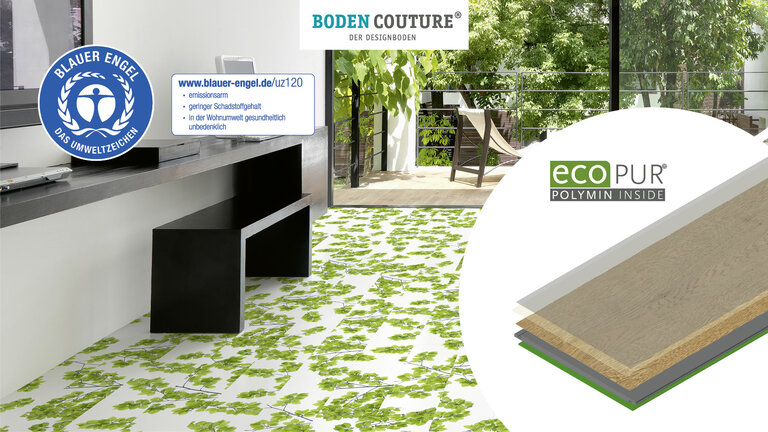 Eco-Pur® ist ein PVC-freier Boden aus Polymin®, recyclebar, weichmacherfrei und umweltfreundlich. Zertifiziert mit Blauem Engel und Eurofins Gold, leicht verlegbar und nachhaltig.