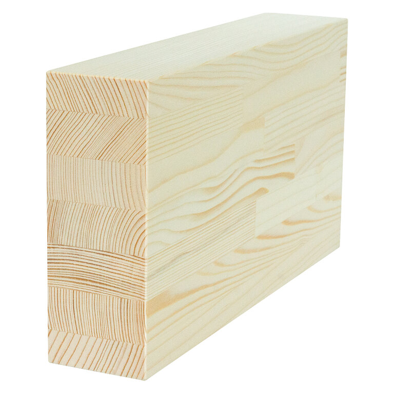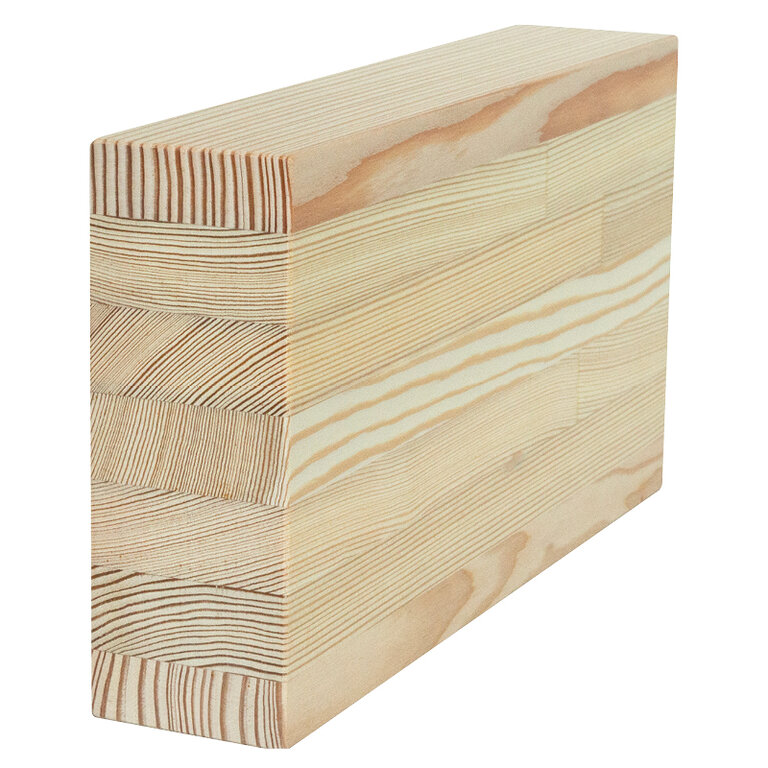 - Alle Lagen keilgezinkt, verschiedene Keilzinkabstände in den Decklagen möglich (50+, 70+, 100+ cm)