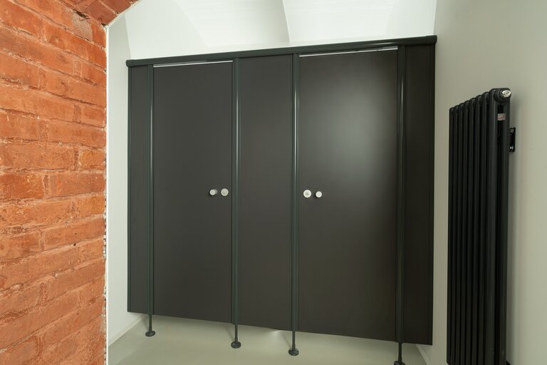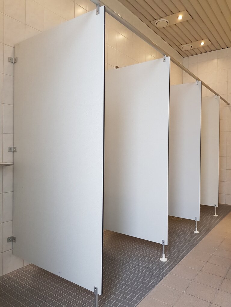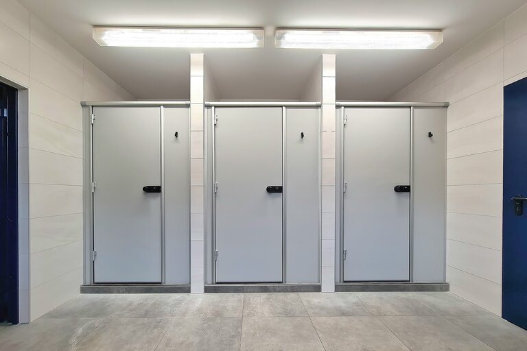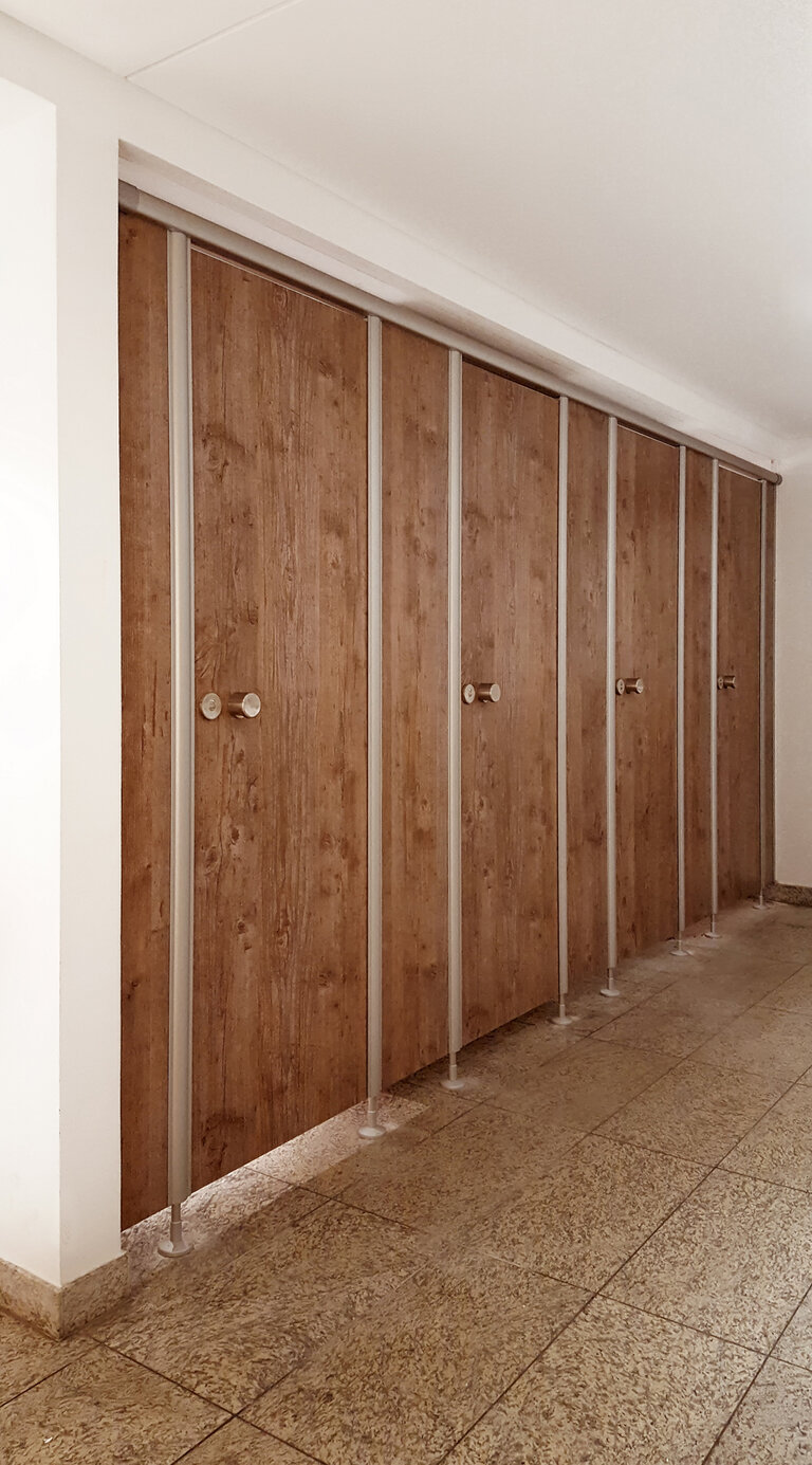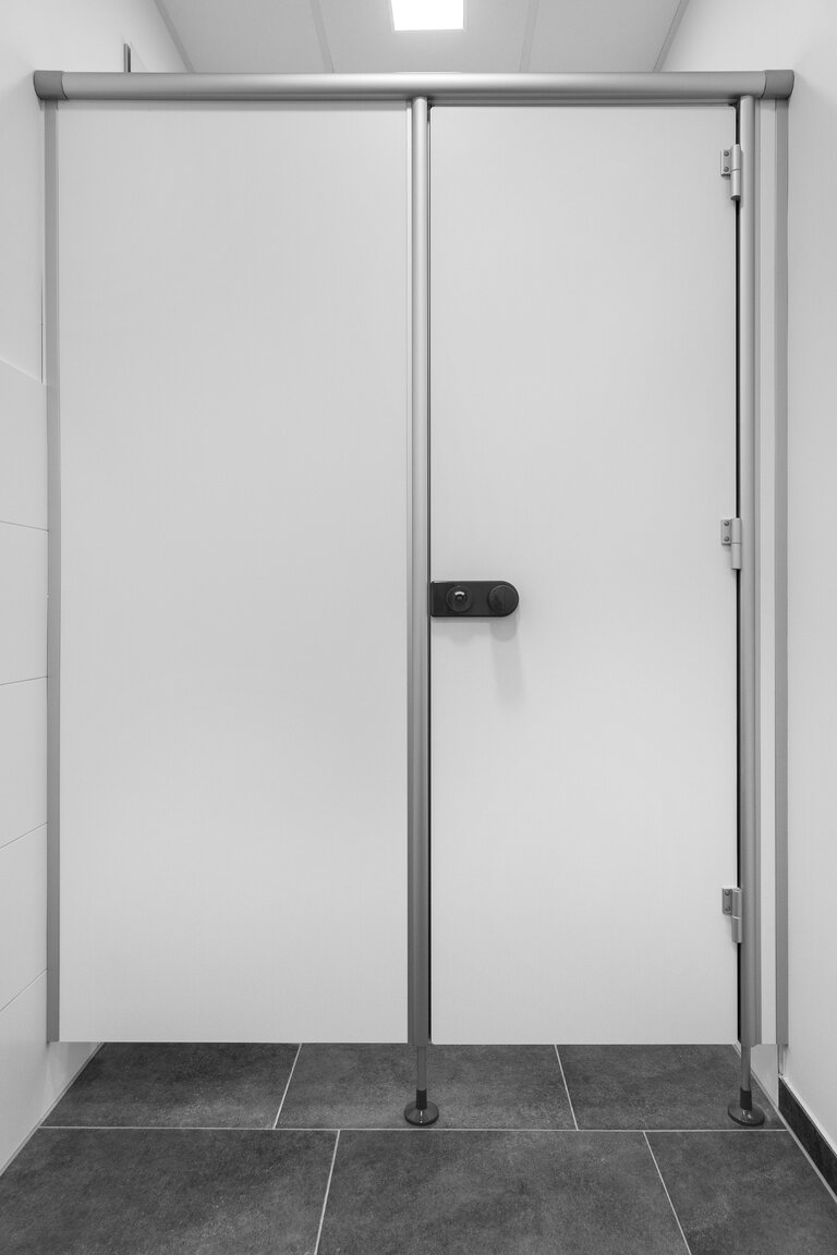 Robustes Trennwandsystem aus 13 mm HPL-Kompaktplatten – widerstandsfähig, feuchtraumgeeignet, montagefreundlich und ideal für stark beanspruchte Einsatzbereiche.