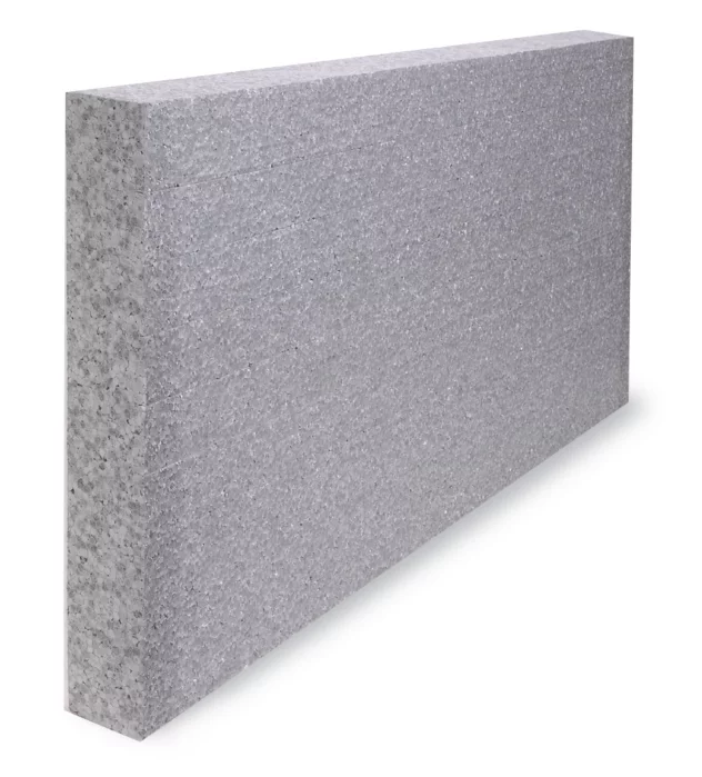 Fassadendämmplatte aus expandiertem Polystyrol, grau.