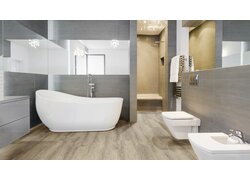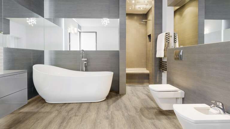 LVT Click Voll-Vinyl im Fliesen Design mit integrierter Dämmung und realistischer Optik und einer V4 Microfuge, strapazierfähig und pflegeleicht für den Wohnbereich.
