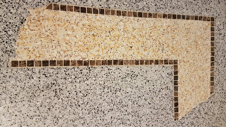 Der Steinboden stellt eine gelungene Kombination der technischen Eigenschaften eines Industriebodens mit der optischen Qualität eines traditionellen venezianischen Steinbodens dar.