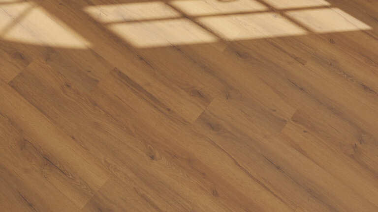 Die schwimmende Verlegung mit Klicksystem ermöglicht eine schnelle Installation. Eine integrierte Trittschalldämmung sorgt für ruhige Raumakustik.