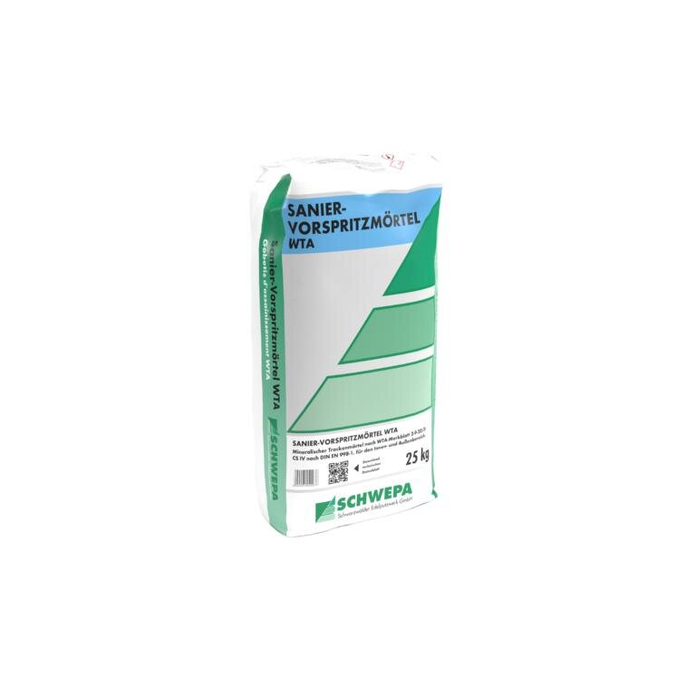SCHWEPA PT-5 Vorspritzmörtel eignet sich als Vorspritzmörtel auf schwierigen Untergründen, Mischmauerwerk, Bruchsteinmauerwerk usw. vor dem Auftrag von Kalk-, Kalkzement und Zementputzen. Bei stark saugenden Untergründen egalisiert SCHWEPA PT-5 Vorspritzmörtel die Saugeigenschaften für den nachfolgenden Putzauftrag. SCHWEPA Sanier-Vorspritzmörtel WTA ist ein Haftspritzbewurf zum Herstellen einer Haftbrücke für den nachfolgenden SCHWEPA Sanier-Wandputz Leicht weiß WTA.