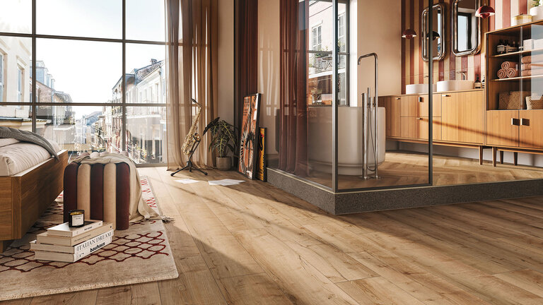 MEISTER Rigid-Vinyl RL 600 S kombiniert modernes Design mit technischer Raffinesse. Unterschiedlich tiefe Porenstrukturen und lackierte Fugen lassen jede Diele lebendig wirken und verleihen ihr eine natürliche Echtholzoptik. Die großformatige Schlossdiele vermittelt ein echtes Holzbodengefühl. RL 600 S lässt sich schnell und einfach verlegen, ist wasserfest und feuchtraumgeeignet – die ideale Wahl für Anspruchsvolle, die Wert auf Ästhetik und Funktion legen.