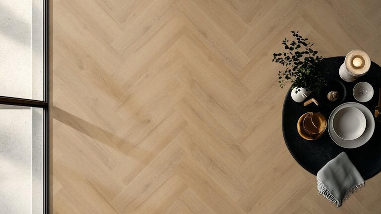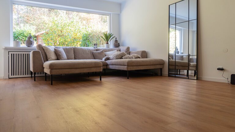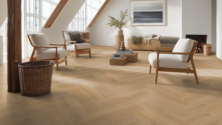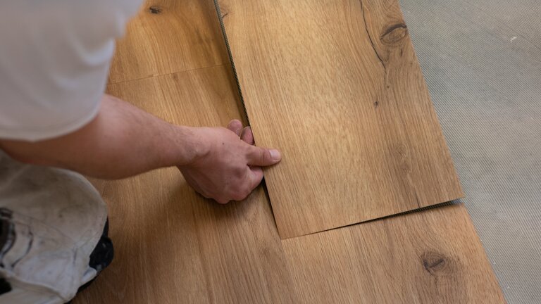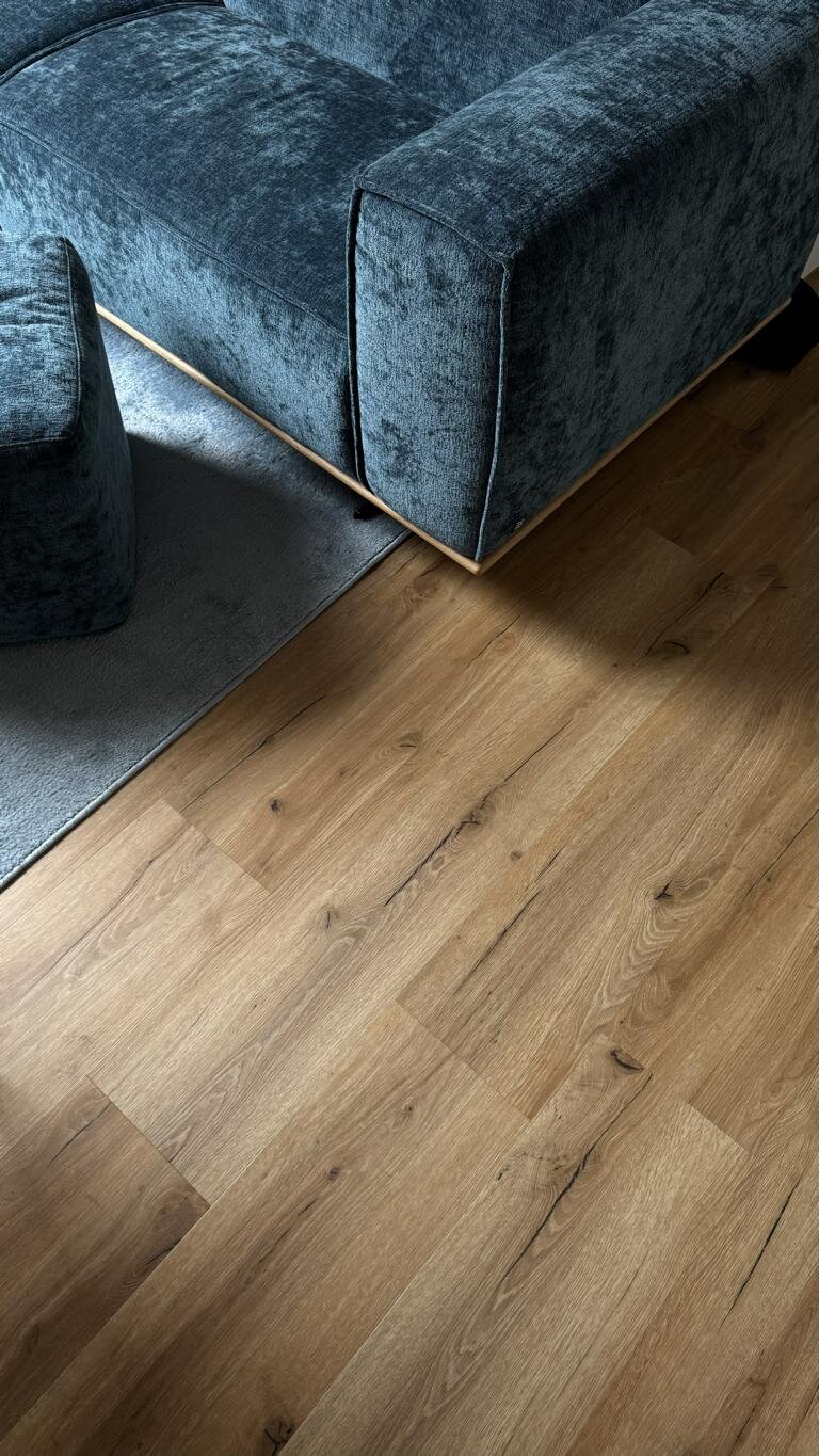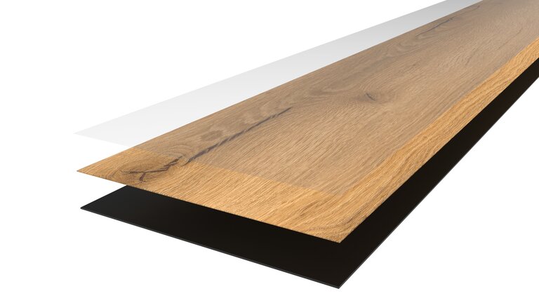 - Klebevinyl mit 0,7 mm Nutzschicht und Synchronprägung