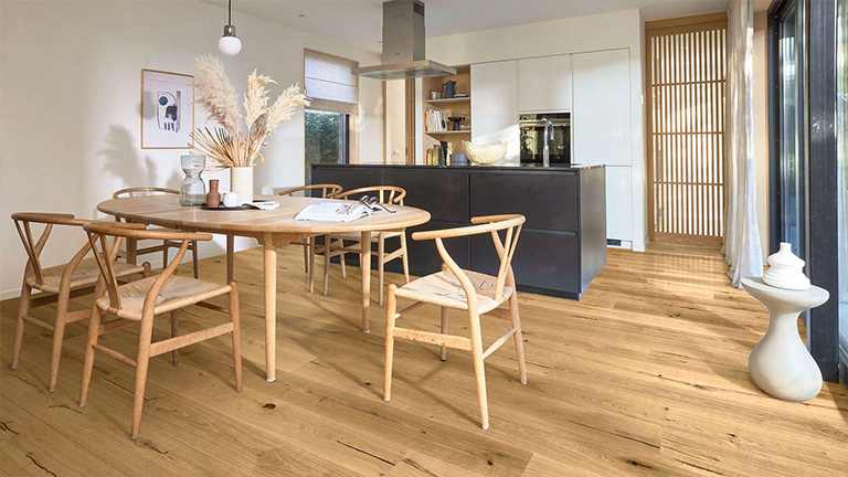 HAIN Ambiente Eiche Classic Glatt geschliffen Längsseitig Microfase Stirnseitig keine Fase Schwarze Spachtelfarbe 2200 x 195 x 12 mm