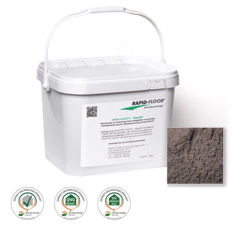 RAPID-FLOOR® PL-Megalith ist ein chemiefreies Estrichzusatzmittel zur Herstellung von konventionellen Zement- und Calciumsulfatestrichen nach DIN 18560.