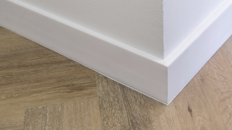 Die Sockelleisten sind für die Verklebung vorgesehen und erfüllen hohe Anforderungen an Materialqualität, Raumluftverträglichkeit und Nachhaltigkeit.