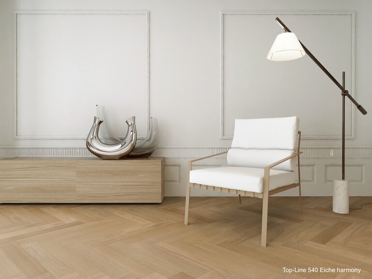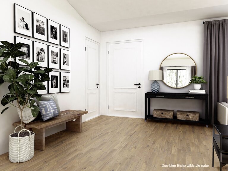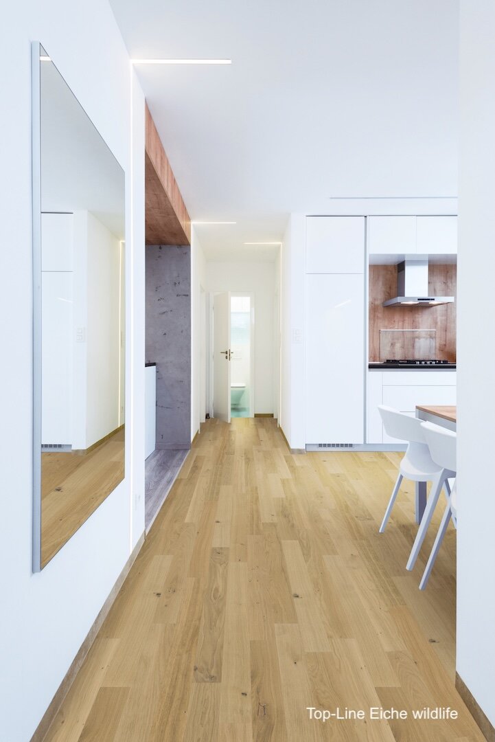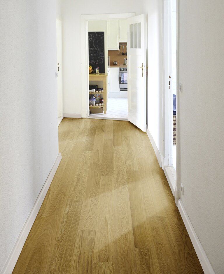Zweischichtparkett aus einer edlen, massiven Nutzschicht aus hochwertigem Echtholz und einer stabilen Trägerschicht aus querverleimtem Holz. Diese Aufbauweise sorgt für hohe Formstabilität und macht das Parkett ideal für den Einsatz auf Fußbodenheizungen. Durch seine geringe Aufbauhöhe eignet es sich hervorragend für Renovierungen. Mit einer großen Auswahl an Holzarten, Oberflächen und Sortierungen bietet es vielfältige Gestaltungsmöglichkeiten – nachhaltig produziert, langlebig und mit natürlichem Charme.