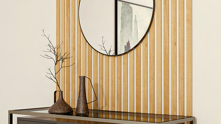 Die Kollektion Smart fügt sich ideal in Ihr Wohnambiente ein. Durch die Montage einzelner Holzlatten direkt an der Wand bleibt der Hintergrund sichtbar