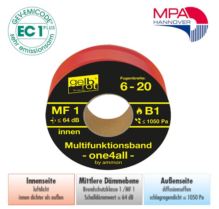sowie Dämmung von Fenster-Bewegungsfugen. Das gelbrot® Multifunktionsband one4all kann nach den Eigenschaften des diffusionsfähigen